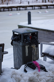Jag kan inte låta bli att reflektera över det här ... jag som ska bära hundskiten i en påse i någon kilometer innan det dyker upp en papperskorg som överlevt politikernas välplanerade ödeläggelse av nämnda korg.